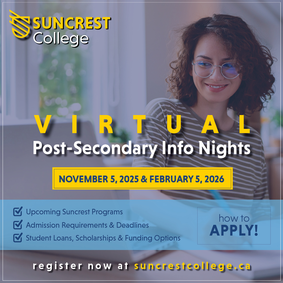 Suncrest College will be hosting an online info session at 7PM on Wednesday, November 5th. This presentation will be aimed at parents, ...
